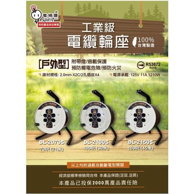 spirit 電精靈戶外型 工業級電纜輪座2芯*2.0延長線DL-2150S 中崙五金