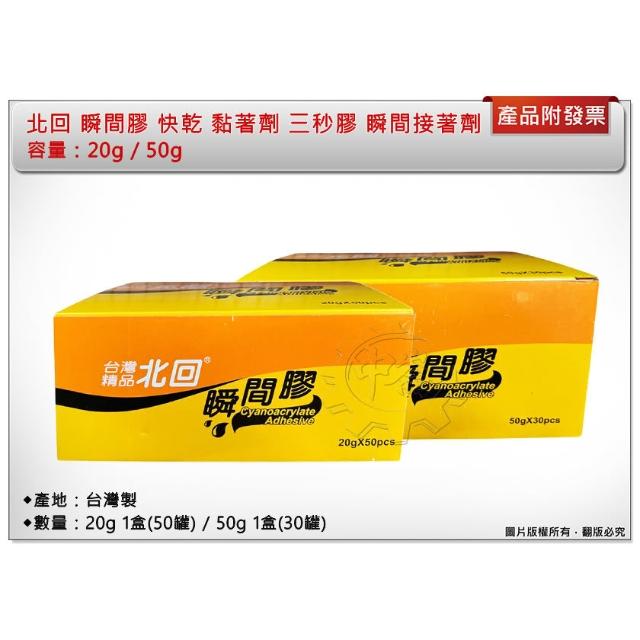 北回 瞬間膠 快乾 黏著劑 三秒膠 20g(1盒50罐)/50g(1盒30罐) 瞬間接著劑 台灣製 中崙五金