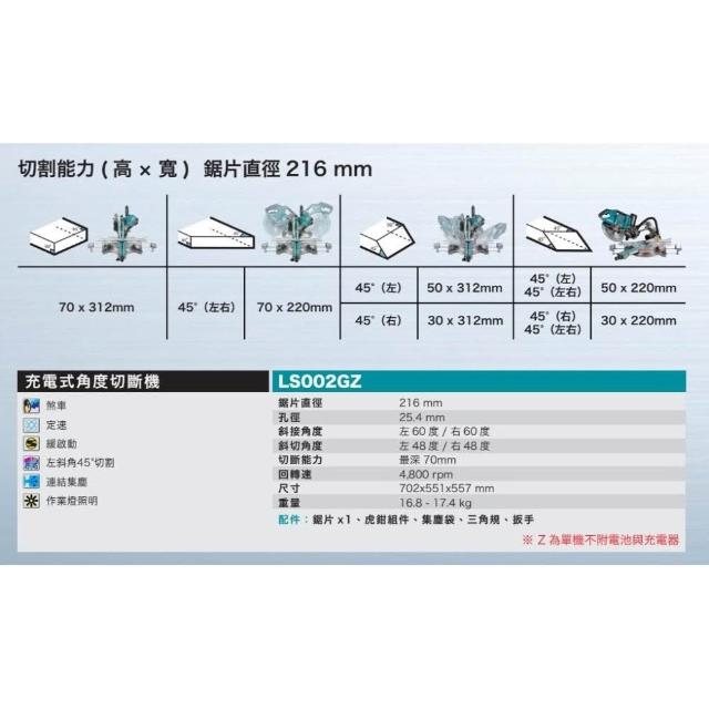 MAKITA 牧田牧田 40V充電式無刷角度切斷機 LS002GZ (單機) 木工切割機 附216mm鋸片 LS002 中崙五金**