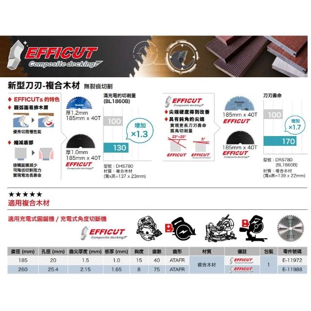 MAKITA 牧田複合木材圓鋸片 E-11972 木工切片 185*20*1*40T 圓鋸片 適用圓鋸機 切斷機 中崙五金