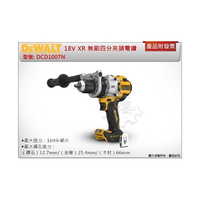 DEWALT 得偉18V XR 無刷四分夾頭電鑽 DCD1007N (單機) 不含電池+充座 電動螺絲起子機 電鑽起子機 中崙五金