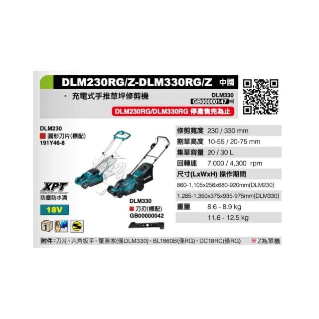 MAKITA 牧田18V充電式手推草坪修剪機 DLM230Z(單機) DLM230 中崙五金