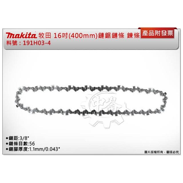 MAKITA 牧田原廠 16吋 (400mm)鏈鋸鏈條191H03-4 鏈鋸機鍊條 適用DUC406Z 中崙五金