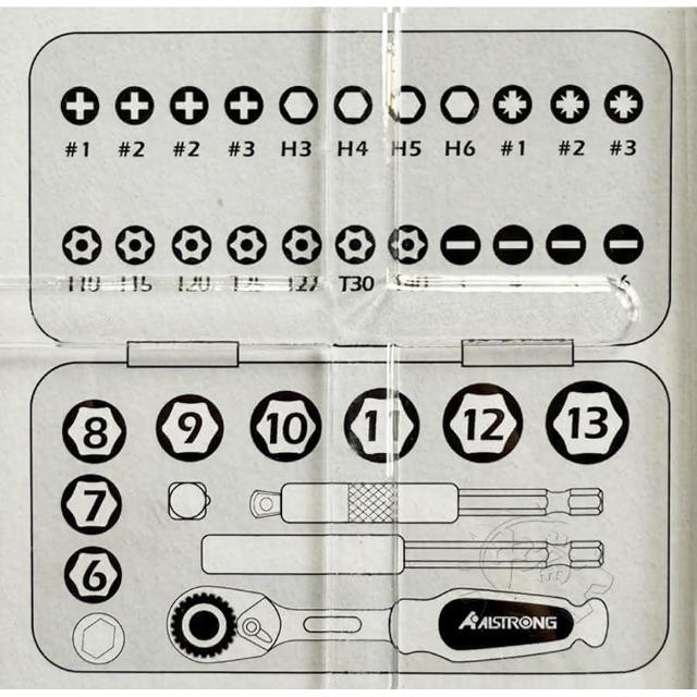 ALSTRONG萬用精密套筒組 1/4 36件組 六角 星型 套筒 2分 MTL-036 中崙五金