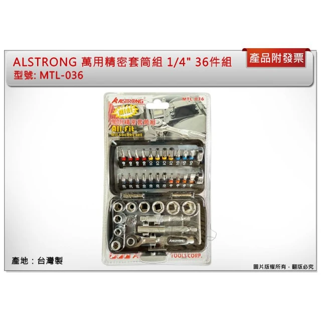ALSTRONG萬用精密套筒組 1/4 36件組 六角 星型 套筒 2分 MTL-036 中崙五金
