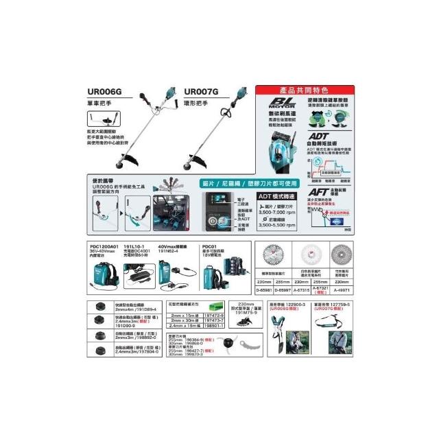 MAKITA 牧田40V無刷高扭力割草機 UR007GT201 UR007GZ02 UR007 中崙五金