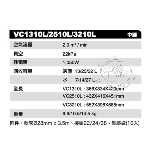 MAKITA 牧田連動式乾溼兩用吸塵器 VC1310L/ VC2510L / VC3210 可接集塵式電動工具 中崙五金