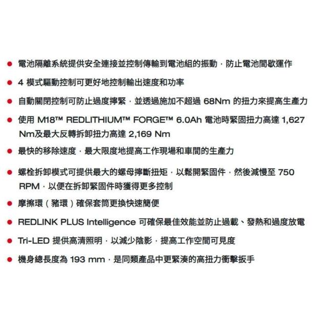 Milwaukee 美沃奇18V無刷4分高扭力衝擊套筒扳手 M18 FHIW2F12-0 單機+選項 M18 FHIW2F12-502X 中崙五金
