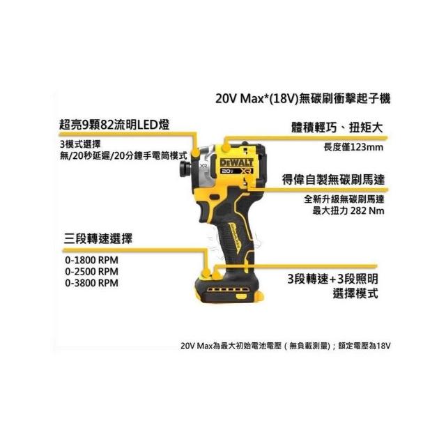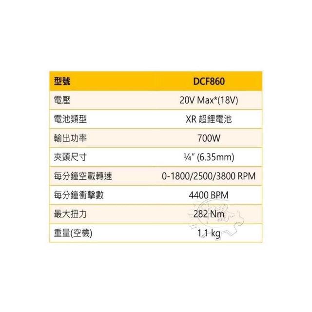 DEWALT 得偉*中崙五金【附發票】(公司貨) DEWALT 得偉 20V 鋰電無碳刷衝擊起子機 DCF860P2 DCF860