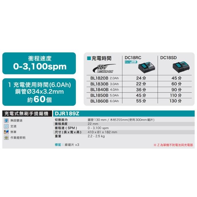 MAKITA 牧田18V 無刷雙機組 DJR189 手提軍刀鋸+DTD173(陸製) 衝擊起子機 雙6.0電池 電動螺絲起子機 中崙五金