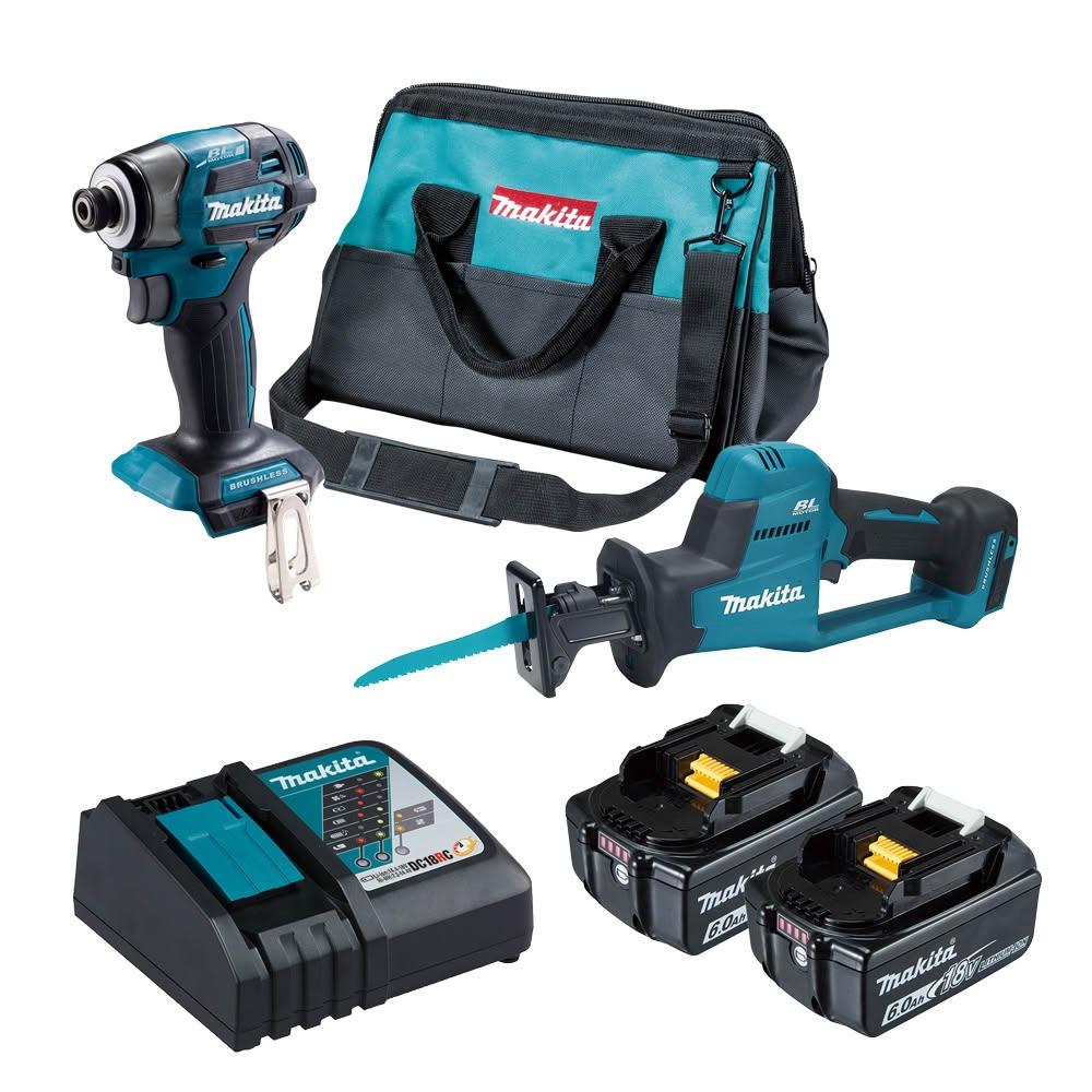 MAKITA 牧田18V 無刷雙機組 DJR189 手提軍刀鋸+DTD173(陸製) 衝擊起子機 雙6.0電池 電動螺絲起子機 中崙五金