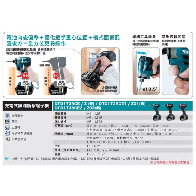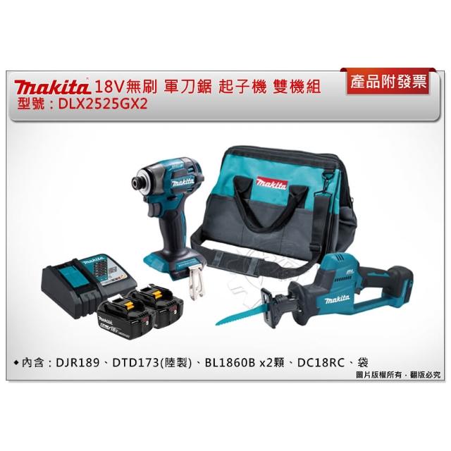 MAKITA 牧田18V 無刷雙機組 DJR189 手提軍刀鋸+DTD173(陸製) 衝擊起子機 雙6.0電池 電動螺絲起子機 中崙五金