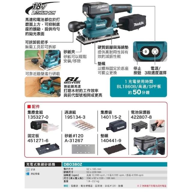 MAKITA 牧田Maita18V充電式無刷砂紙機 DBO380Z(單機) DBO380 研磨機 拋光機 中崙五金