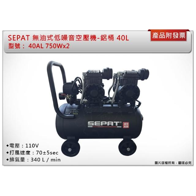 SEPAT 無油式輕量鋁桶 空壓機 40AL 750Wx2 低噪音 快速型 儲氣筒容量40L 中崙五金