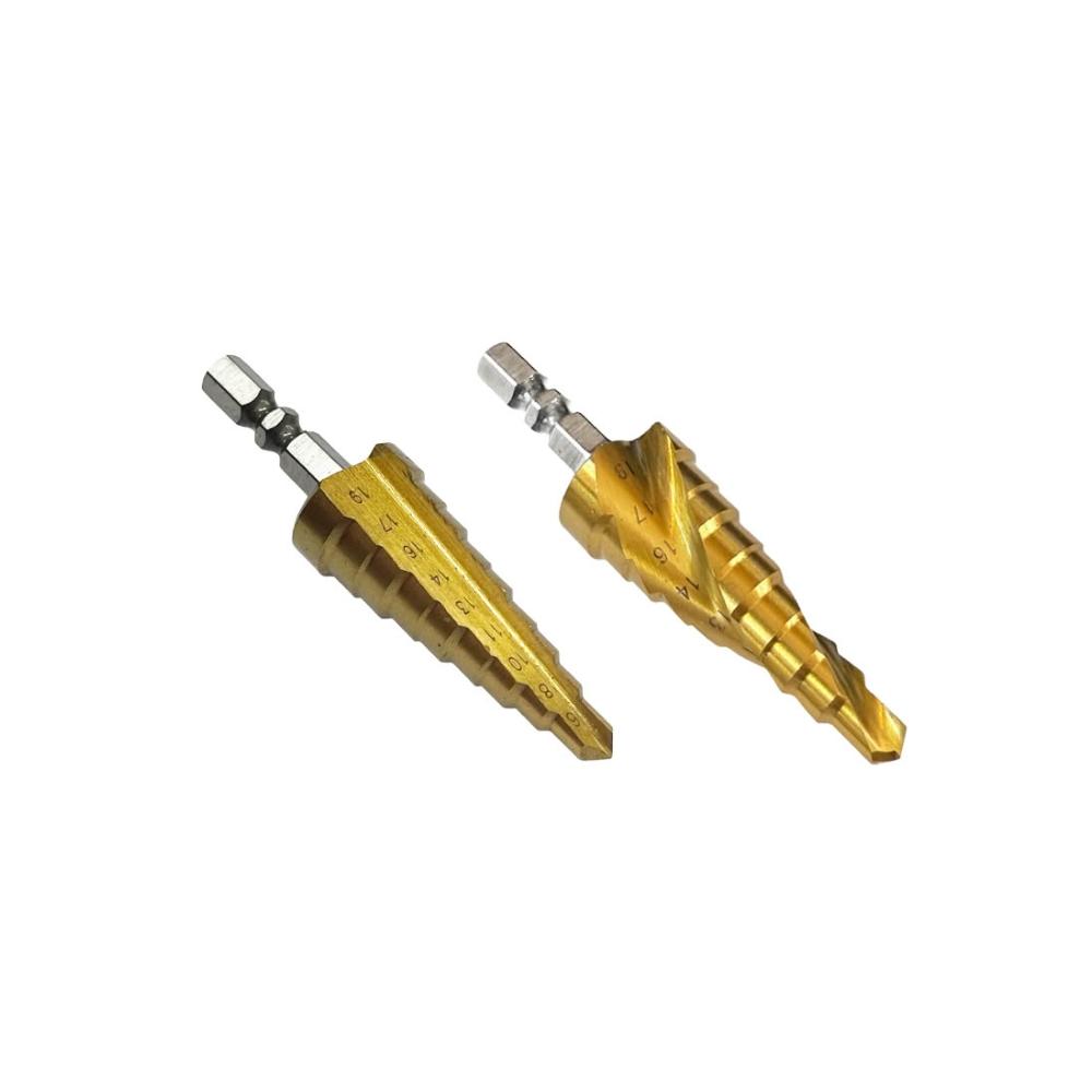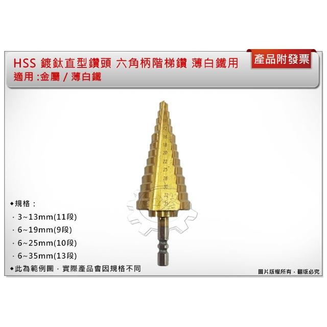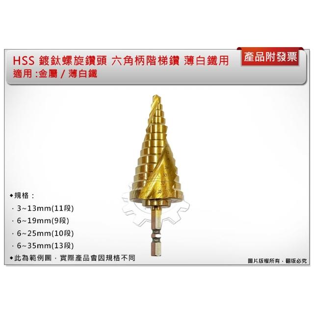 HSS鍍鈦階梯鑽頭 直型/螺旋 3~13、6~19/25/35mm 六角柄階梯鑽 圓穴鑽 薄白鐵用 中崙五金