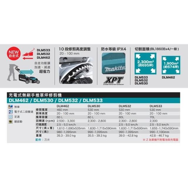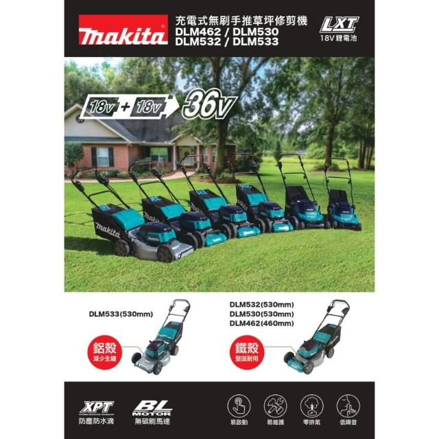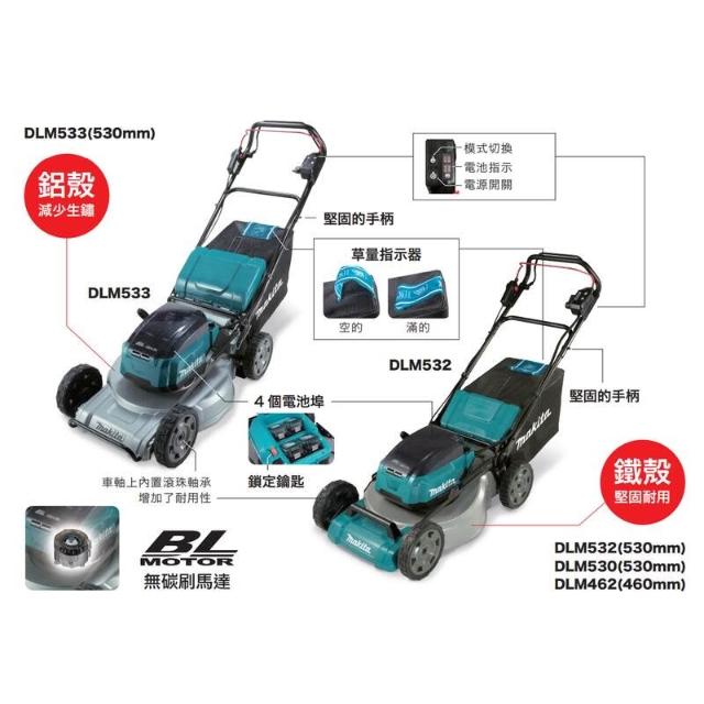 MAKITA 牧田(18V+18V)充電式無刷手推草坪修剪機(附自走) DLM533 DLM533Z 鋁殼割草 中崙五金