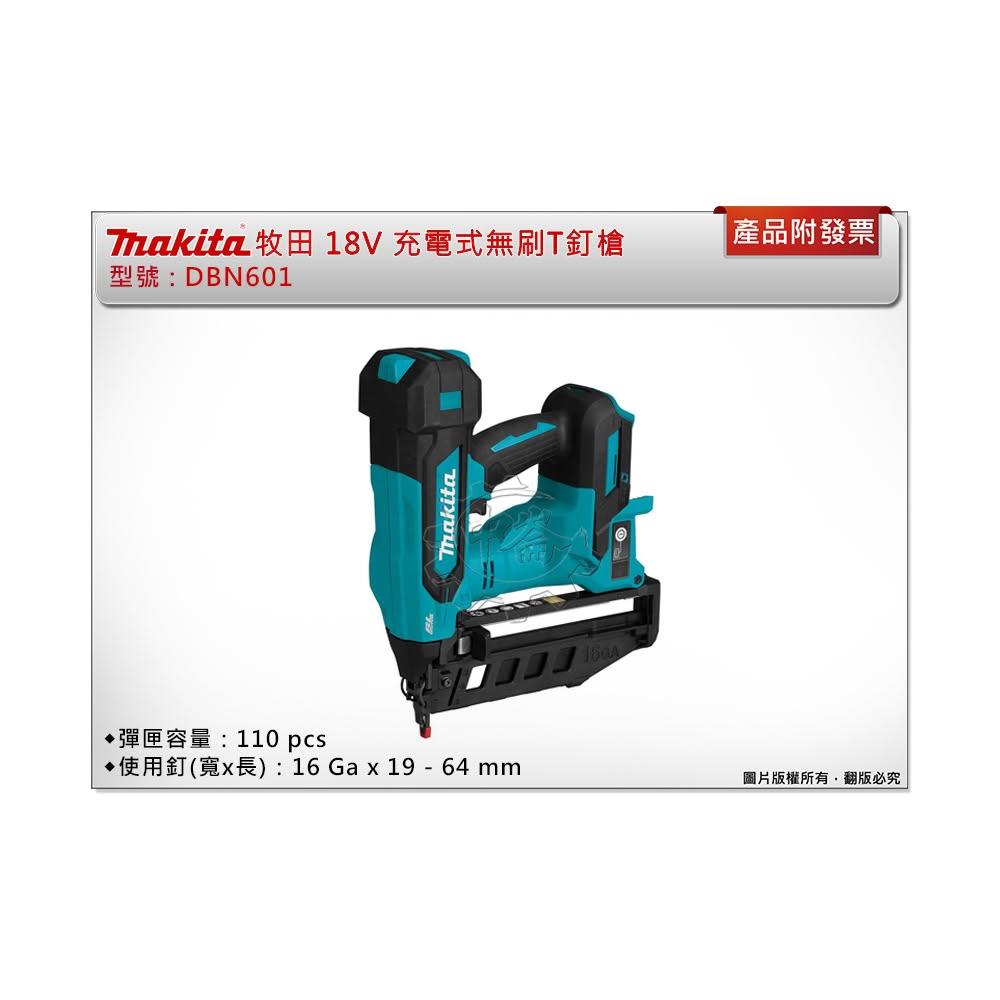 MAKITA 牧田18V 無刷木工T型釘槍 DBN601Z (單機) 釘槍 16Ga 釘子長度可裝19-64mm 中崙五金
