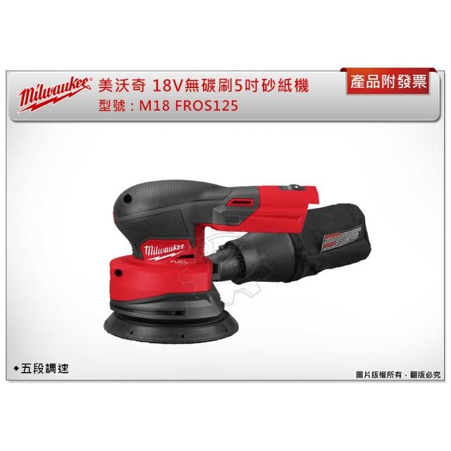 Milwaukee 美沃奇18V無刷5吋(125mm) 砂紙機 M18 FROS125 (單機) 研磨機 拋光機 中崙五金