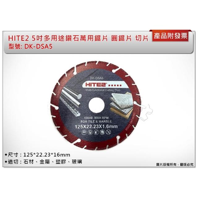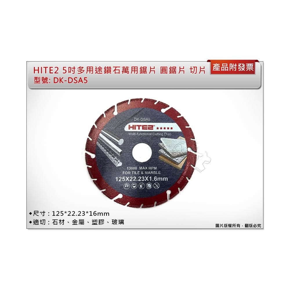 *中崙五金【附發票】HITE2 5吋(125mm)多用途鑽石萬用鋸片 DK-DSA5 切片 適切:石材、金屬、塑膠、玻璃
