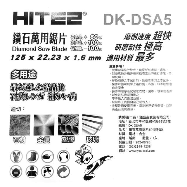 *中崙五金【附發票】HITE2 5吋(125mm)多用途鑽石萬用鋸片 DK-DSA5 切片 適切:石材、金屬、塑膠、玻璃