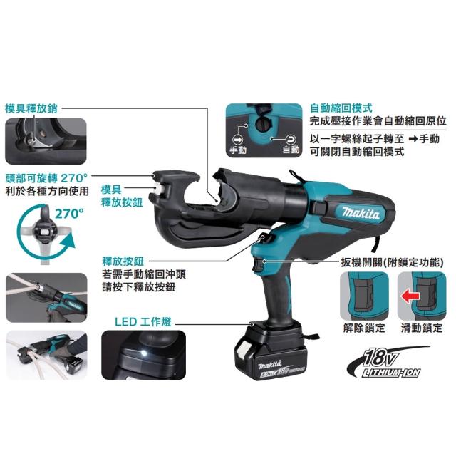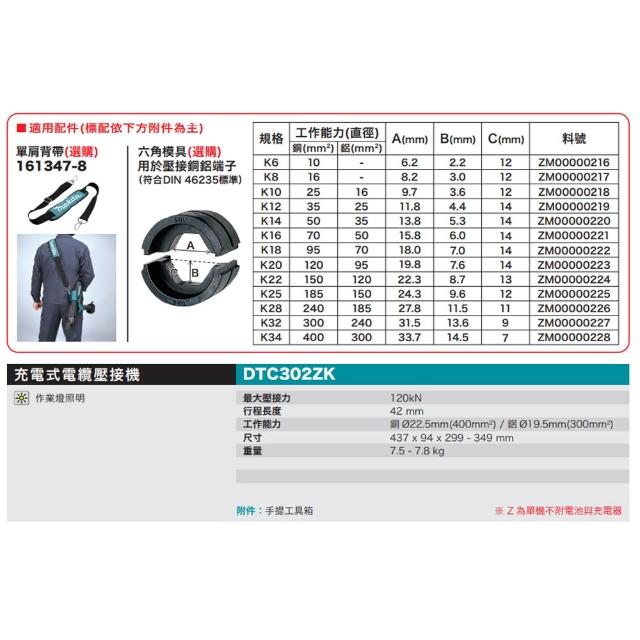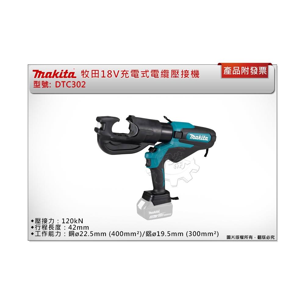 MAKITA 牧田*中崙五金【附發票】牧田18V12噸電纜壓接機 DTC302ZK 端子壓著 DTC302 油壓壓接鉗 適用:六角端子+C