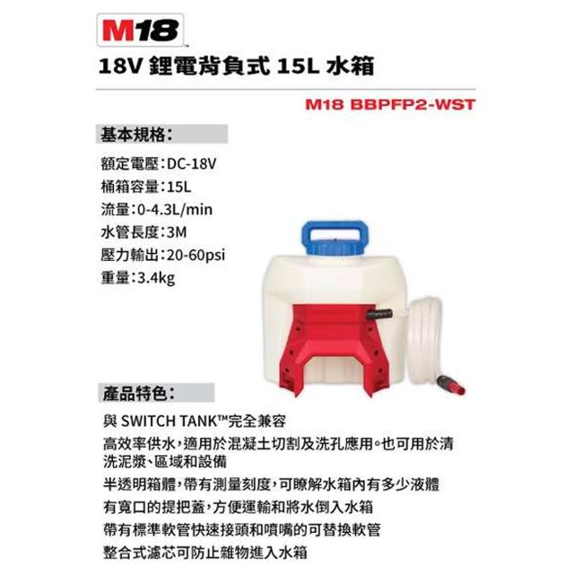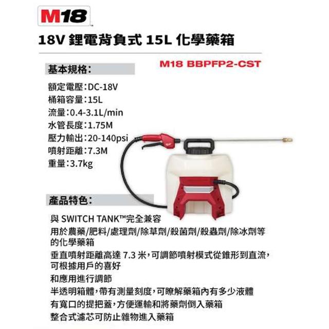 Milwaukee 美沃奇美沃奇 18V背負式噴霧動力機 M18 BBPFP2主機 可搭配 WST水箱/CST化學藥箱 中崙五金