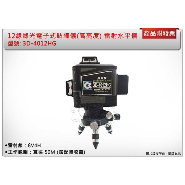 12線綠光電子式貼牆儀(高亮度) 3D-4012HG(不含腳架)雷射水平儀 自動整平 中國製 中崙五金