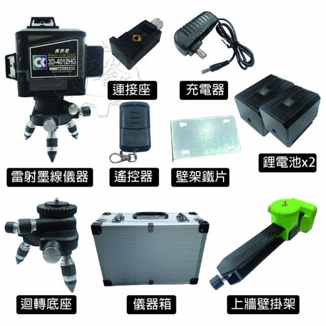 12線綠光電子式貼牆儀(高亮度) 3D-4012HG(不含腳架)雷射水平儀 自動整平 中國製 中崙五金