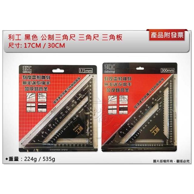 利工 黑色公制三角尺 17CM / 30CM 三角尺 木工專用尺 90度 直角尺 45度角尺 三角板 中崙五金