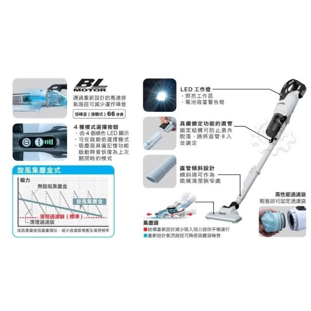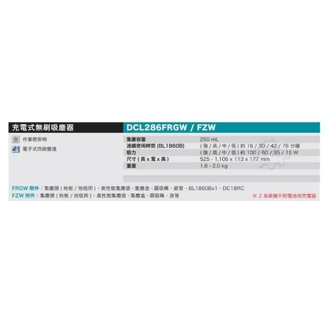 MAKITA 牧田18V充電式無刷集塵器 吸塵器 附旋風集塵筒 DCL286FRGW DCL286 單觸開關+4模式 中崙五金