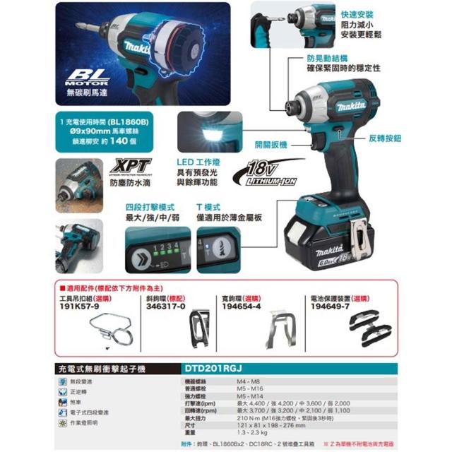 MAKITA 牧田18V無刷衝擊起子機 DTD201RGJ DTD201Z DTD201 起子機 中崙五金