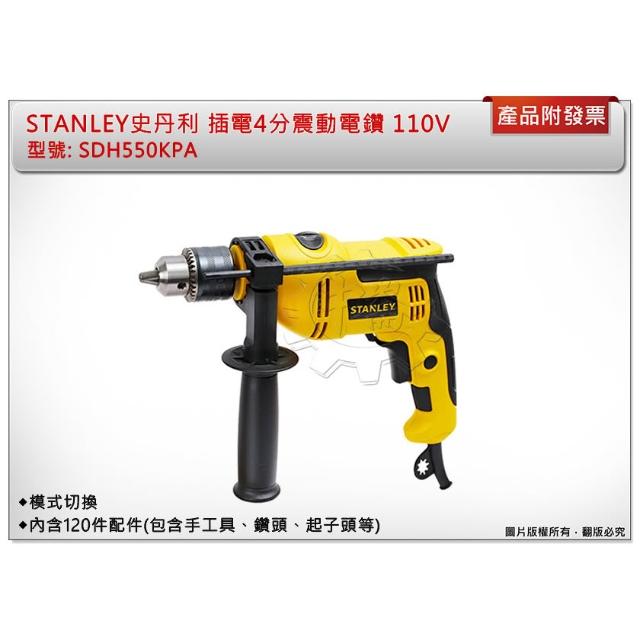 Stanley史丹利 插電4分震動電鑽 SDH550KPA 內含120件配件 110V 電鑽 中崙五金