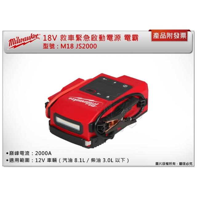 Milwaukee 美沃奇美沃奇 18V鋰電救車緊急啟動電源 M18 JS2000-0 電霸 救車行動電源 附LED燈*中崙五金
