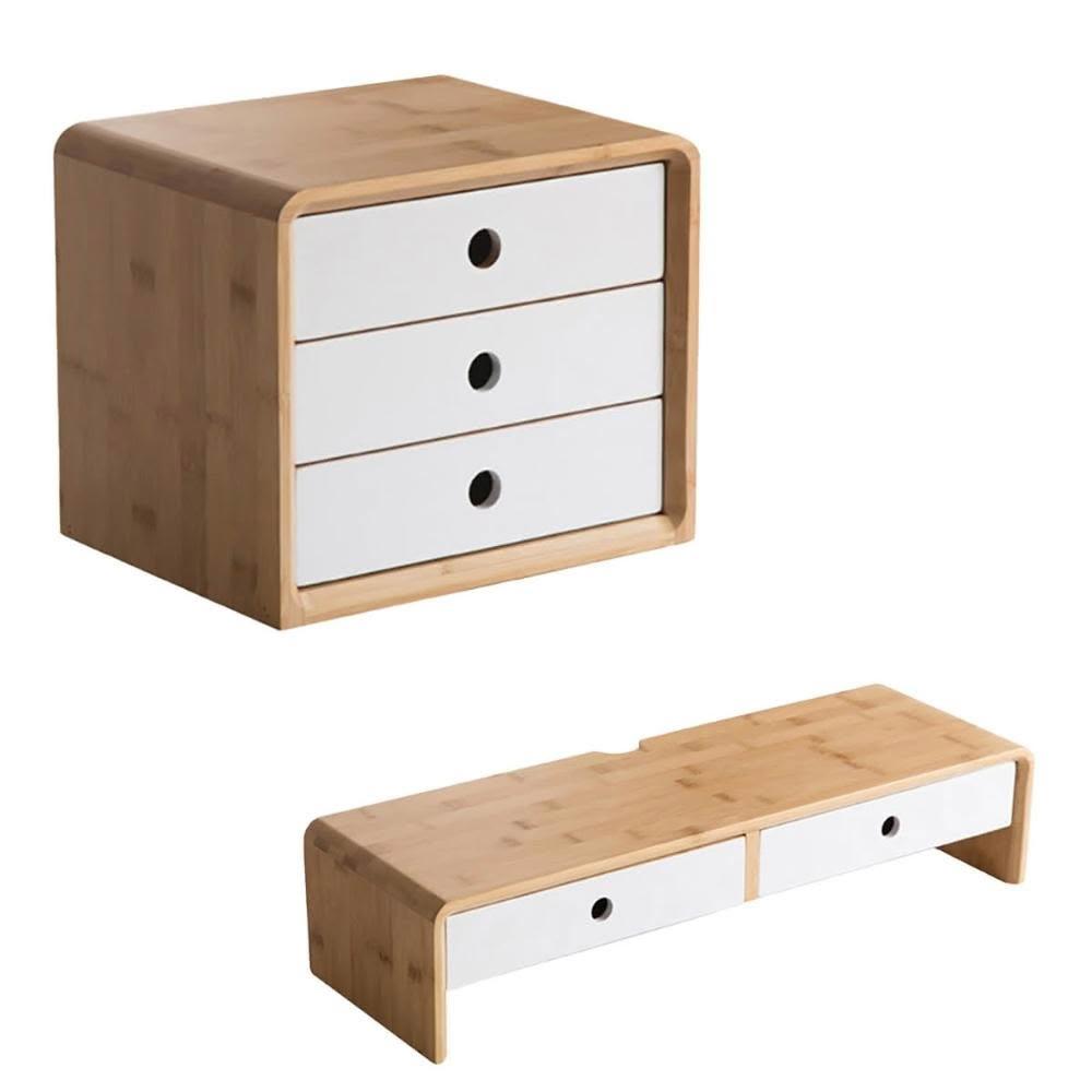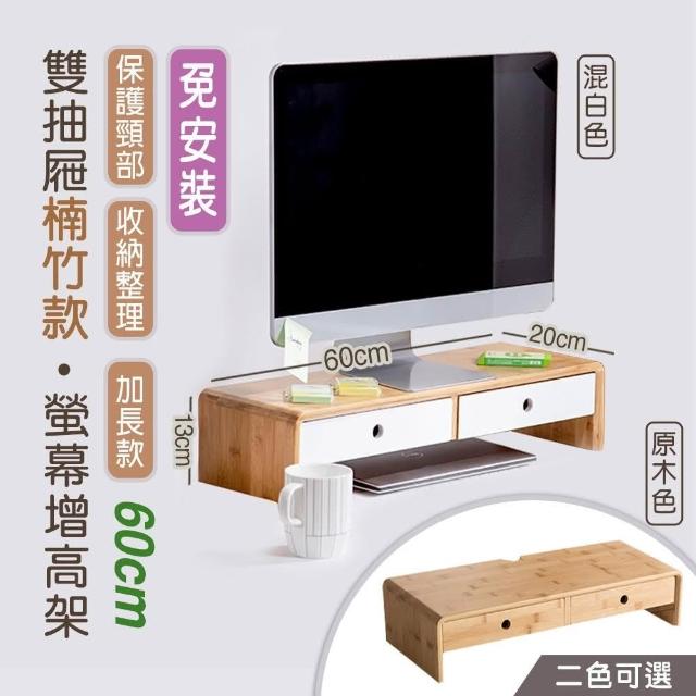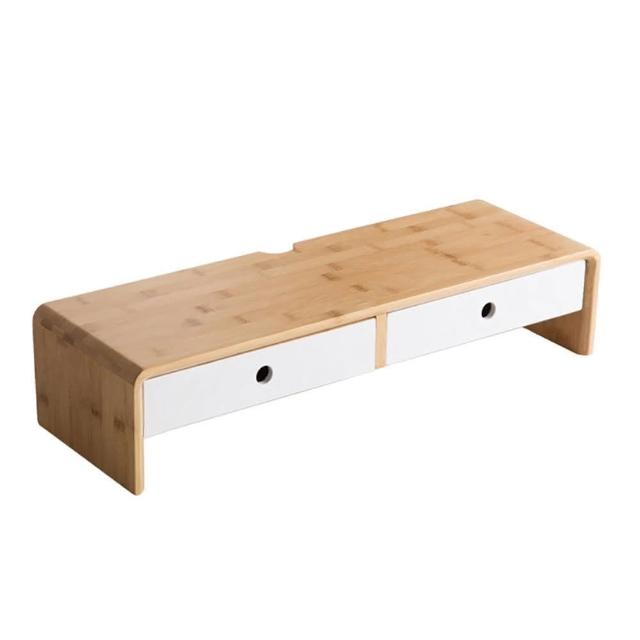 i家 雙抽屜螢幕增高架 (楠竹 置物架 邊桌抽屜櫃 電腦螢幕架 鍵盤架 側邊櫃 收納)