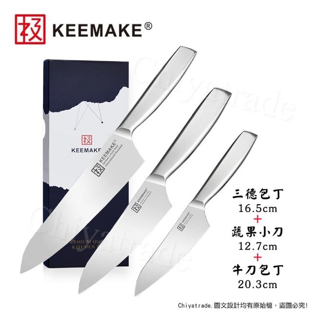 日本極KEEMAKE日本極 高碳鋼 輕巧極緻一體構造 不鏽鋼刀-3入組(三德+蔬果小刀+牛刀)
