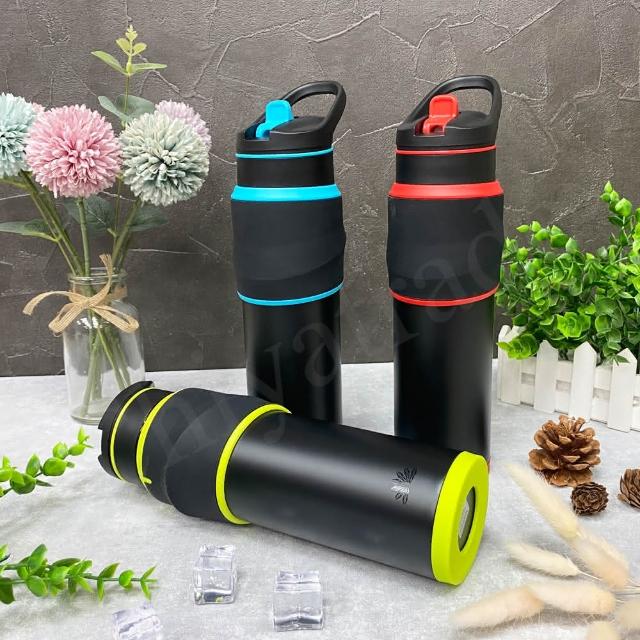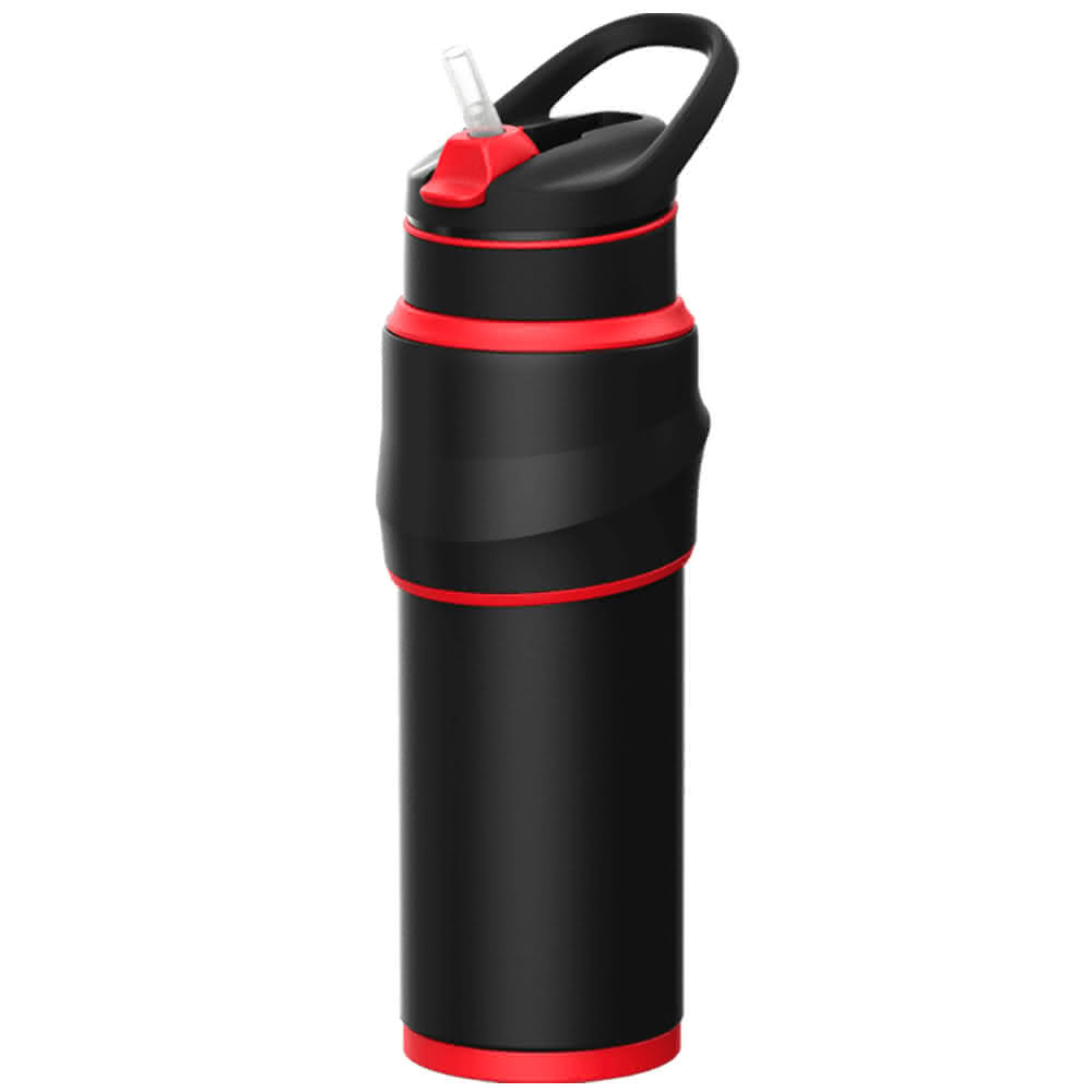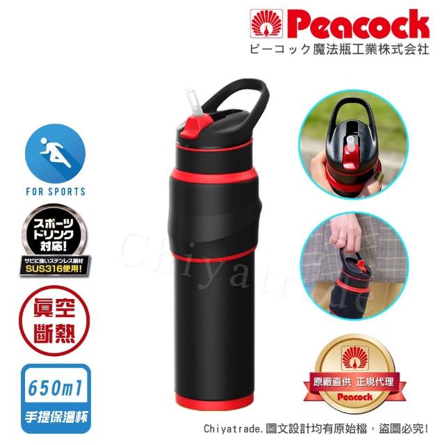 Peacock 日本孔雀316不鏽鋼 運動保溫杯 防滑矽膠握把 一鍵式吸管 650ML-紅黑 手提設計 (保溫瓶)