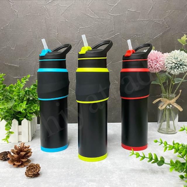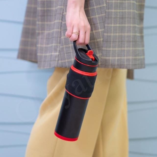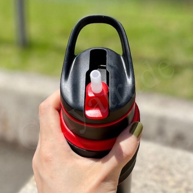 Peacock 日本孔雀316不鏽鋼 運動保溫杯 防滑矽膠握把 一鍵式吸管 650ML-紅黑 手提設計 (保溫瓶)