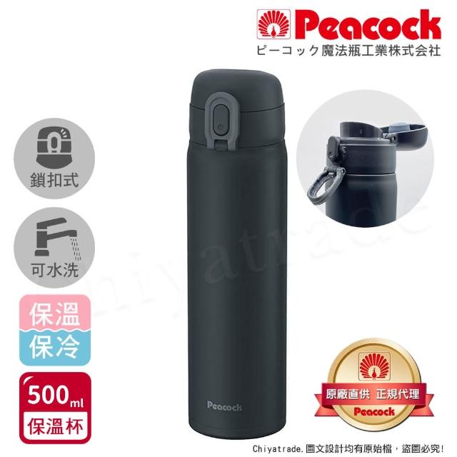 Peacock 日本孔雀時尚休閒 鎖扣式彈蓋 不鏽鋼保溫杯500ML-黑 直飲口設計 (保溫瓶)