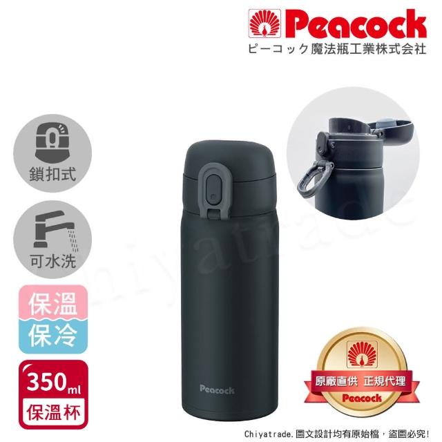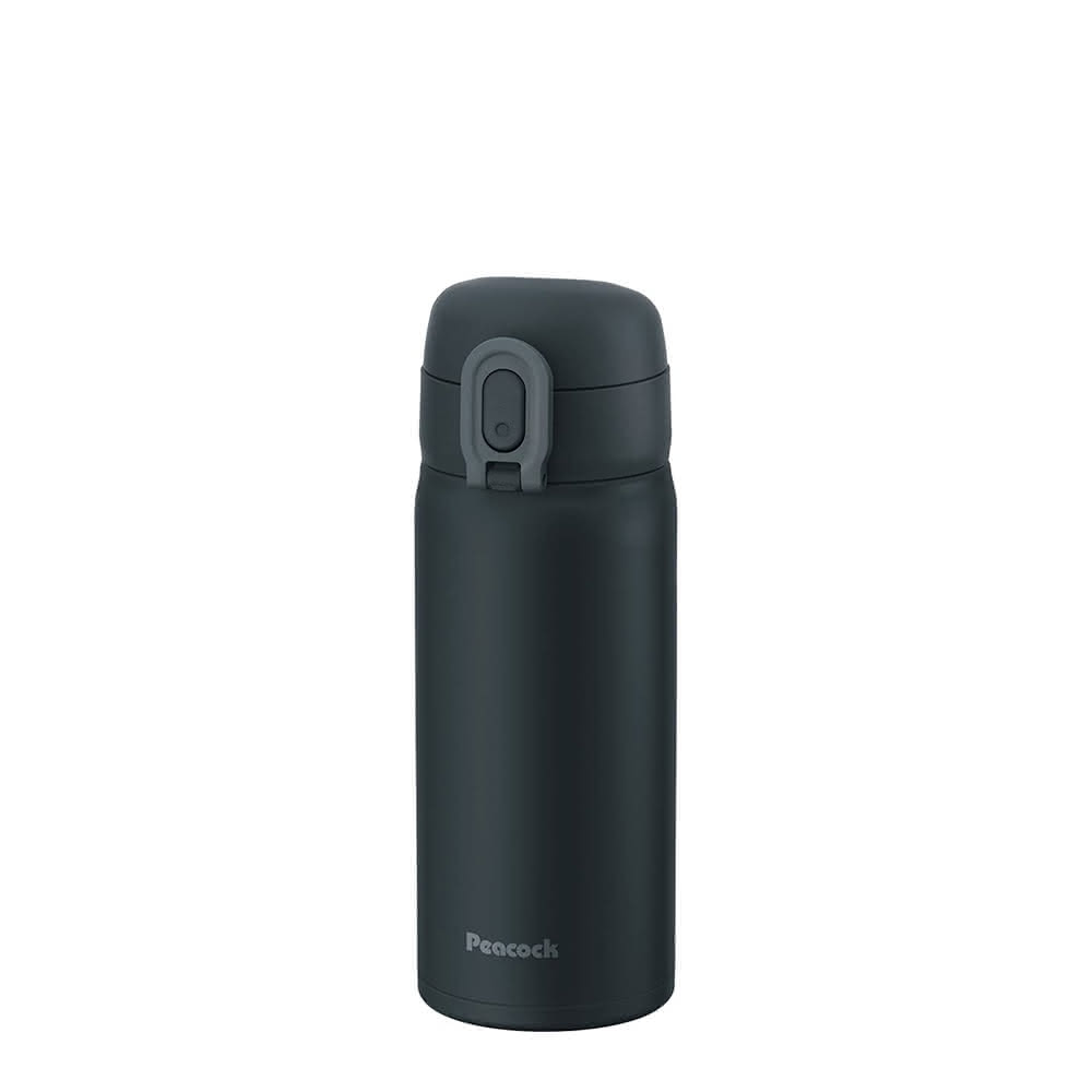 Peacock 日本孔雀時尚休閒 鎖扣式彈蓋 不鏽鋼保溫杯350ML-黑 直飲口設計(保溫瓶)