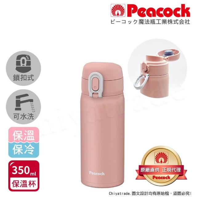 Peacock 日本孔雀時尚休閒 鎖扣式彈蓋 不鏽鋼保溫杯350ML-粉 直飲口設計 (保溫瓶)