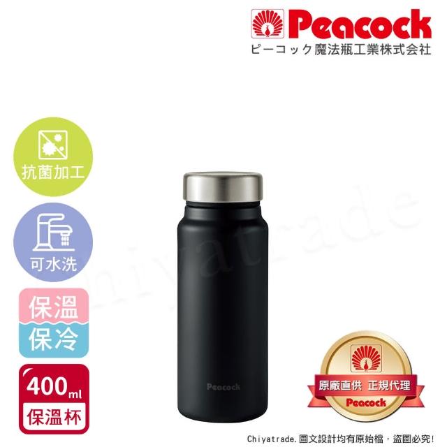 Peacock 日本孔雀商務休閒 不鏽鋼保冷保溫杯400ML-消光黑 輕量化設計 (保溫瓶)