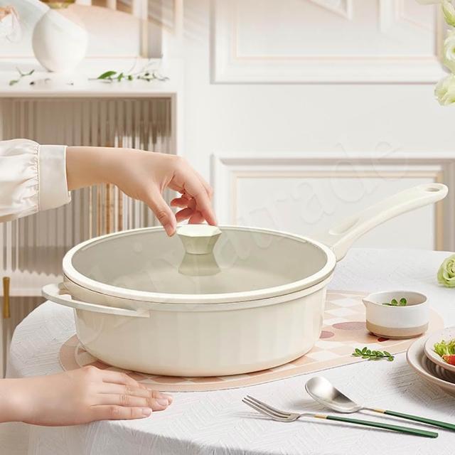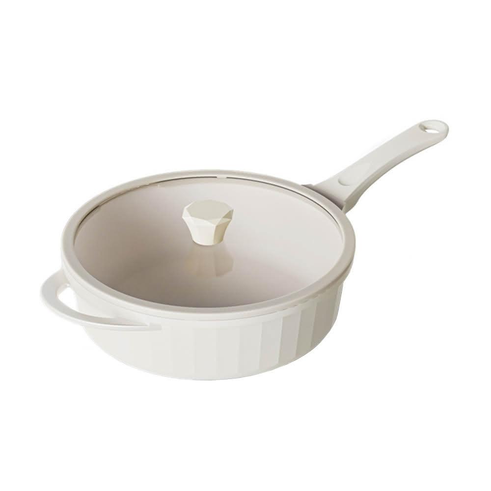 Sushar 小菜ㄚ羅馬柱款 不沾鍋 深煎炒鍋28cm IH全對應-白色(全平玻璃蓋)