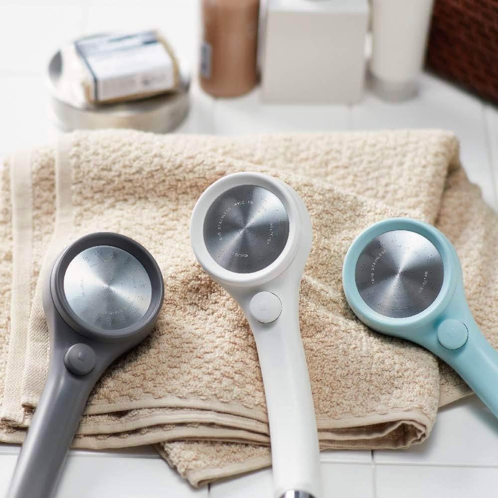 日本三榮SANEI日本製 極細0.3mm超省水 RAINY STOP 不鏽鋼蓮蓬頭-白/灰/藍(瞬間止水設計)