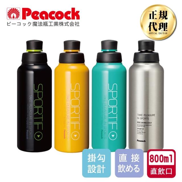 Peacock 日本孔雀運動暢快直飲不鏽鋼保溫杯800ML-掛勾孔設計-任選 旋蓋直飲口 (保溫瓶)