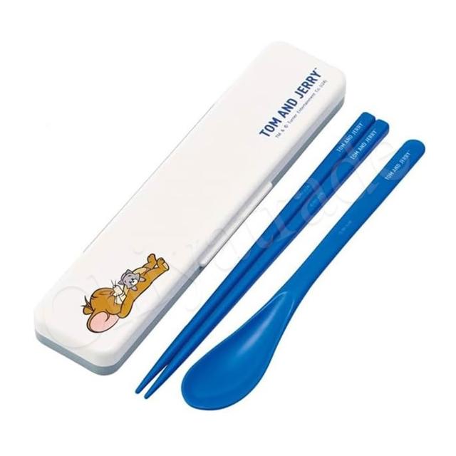 百科良品日本製 湯姆貓與傑利鼠 睡午覺款 環保筷子+湯匙組 抗菌加工Ag+ 18CM(日本境內版)