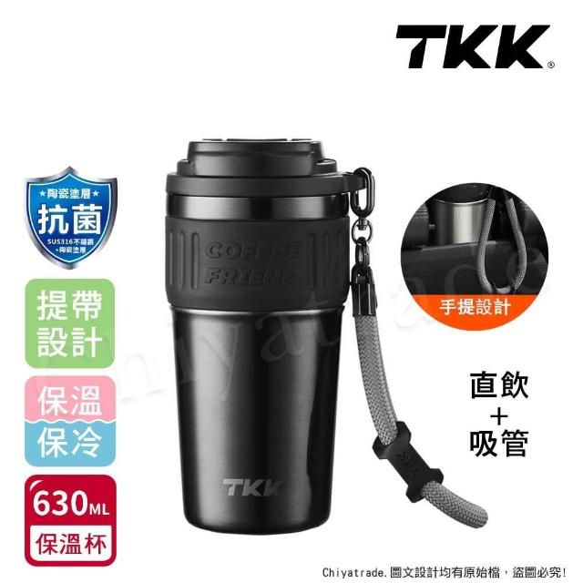 TKK洛奇系列 316不鏽鋼x陶瓷噴塗 咖啡杯 保溫杯 隨身杯 630ML(直飲+吸管)