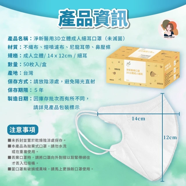 淨新3D立體成人細耳 50枚入 立體口罩 淨新口罩 醫療口罩 成人口罩 醫用口罩 口罩醫療 淨新 口罩 3D 防疫