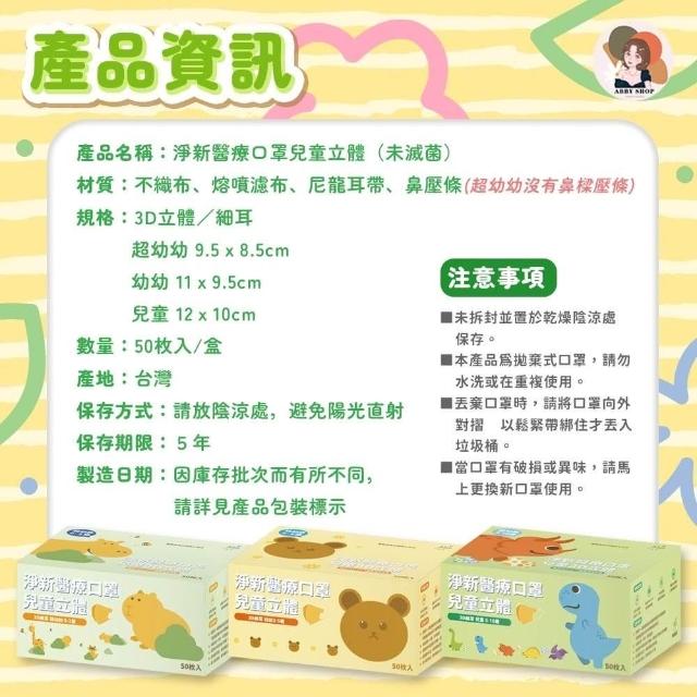 淨新淨新醫療口罩 50枚入(兒童立體 淨新口罩 兒童口罩 幼童口罩 幼兒口罩 小孩口罩 醫用口罩)