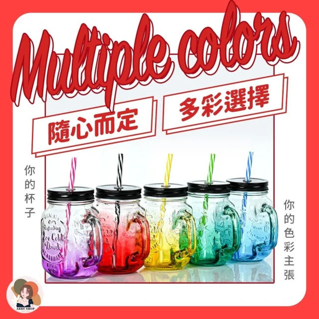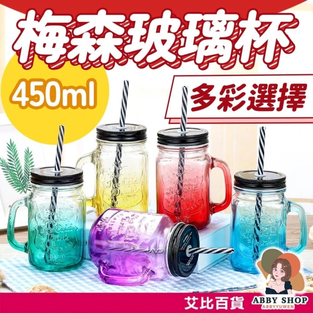 英文梅森吸管玻璃杯 450ML(梅森玻璃杯 公雞杯 梅森杯 玻璃杯子 玻璃杯 果汁杯 飲料杯 水杯 杯子)