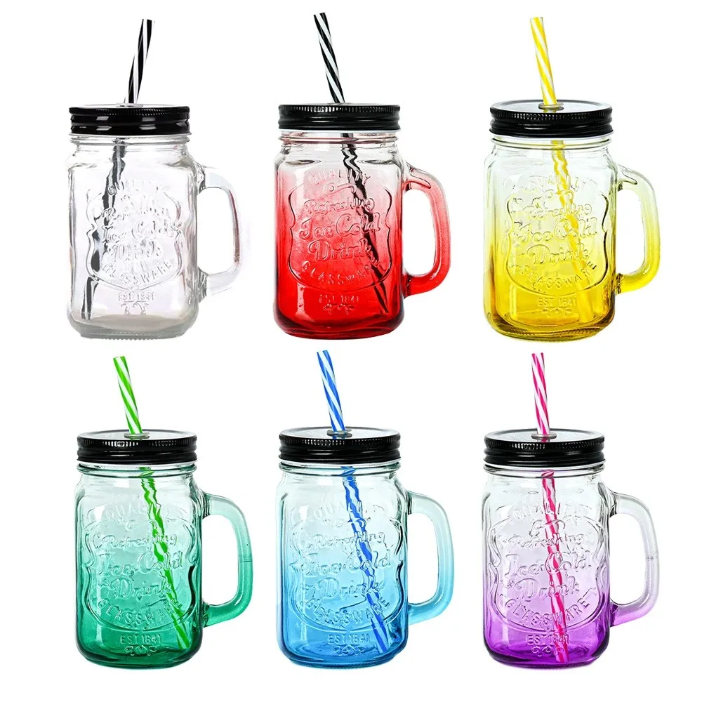 ABBY SHOP英文梅森吸管玻璃杯 450ML(梅森玻璃杯 公雞杯 梅森杯 玻璃杯子 玻璃杯 果汁杯 飲料杯 水杯 杯子)